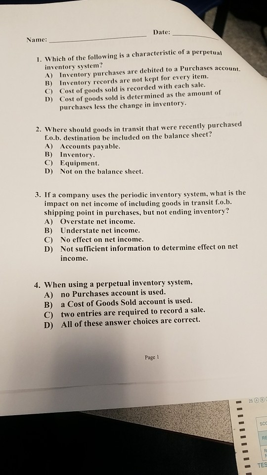 Credit Merchandise Inventory 5000 When the perpetual inventory system is used the inventory sold is shown on the income statement as. False Purchased goods in transit should be included in the ending inventory of the buyer if the goods were shipped FOB shipping point.
